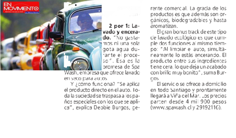 Diario LUN destaca nuestra empresa por su MODELO SUSTENTABLE al NO USAR AGUA, y por nuestros Productos y Servicios Premium de Lavado en Seco de Autos, Motos, Bicicletas, Lanchas y cualquier tipo de Vehículo.